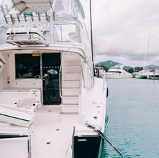 Все необходимое снаряжение для трофейной рыбалки: инсталлированный троллинговый ряд спиннингов с морскими мультипликаторными катушками, багры, живые и искусственные приманки. Стационарные аутриггеры, даундиггер